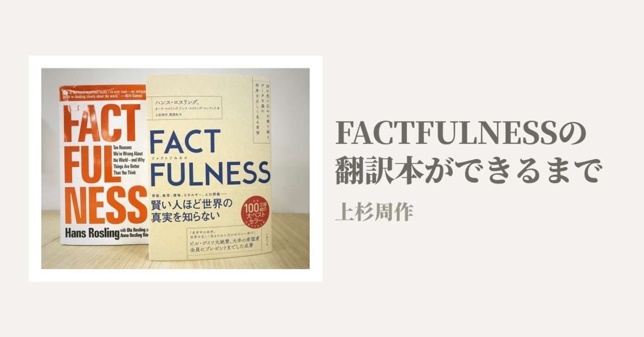 『ファクトフルネス』は上杉周作さんと関美和さんの共訳で、「FACTFULNESS(ファクトフルネス)」の翻訳本ができるまで(2018/12/25公開) によると、前半第5章までは上杉さんが担当されたそうです。