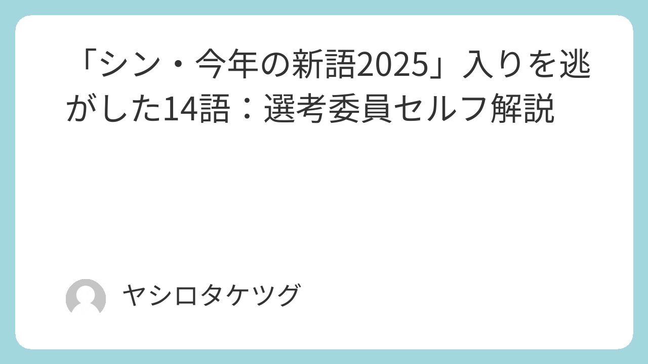11/30付で「シン・今年の新語2025」トップ10とその選評をリリースしました。