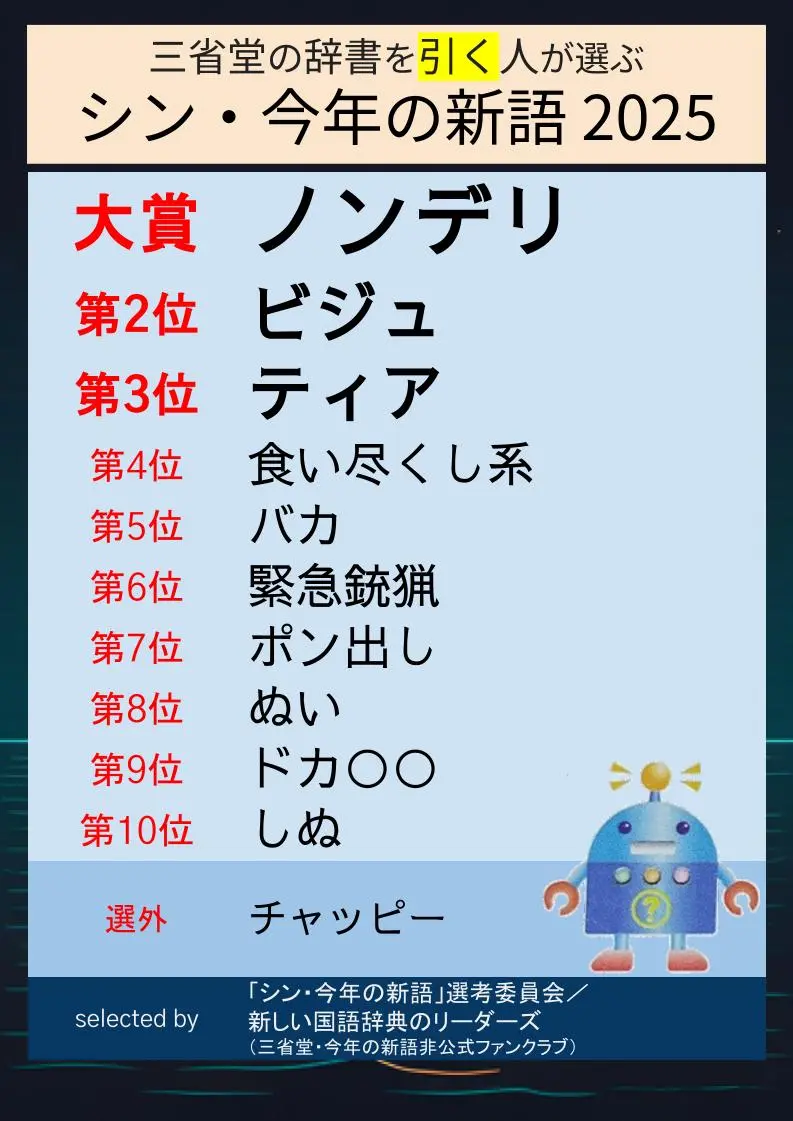 実際「オールドメディア」を筆頭に、いくつかの語がダメでしたけど、そこを除けば「今年の新語2025」には魅力的な言葉がたくさん集まったじゃありませんか。